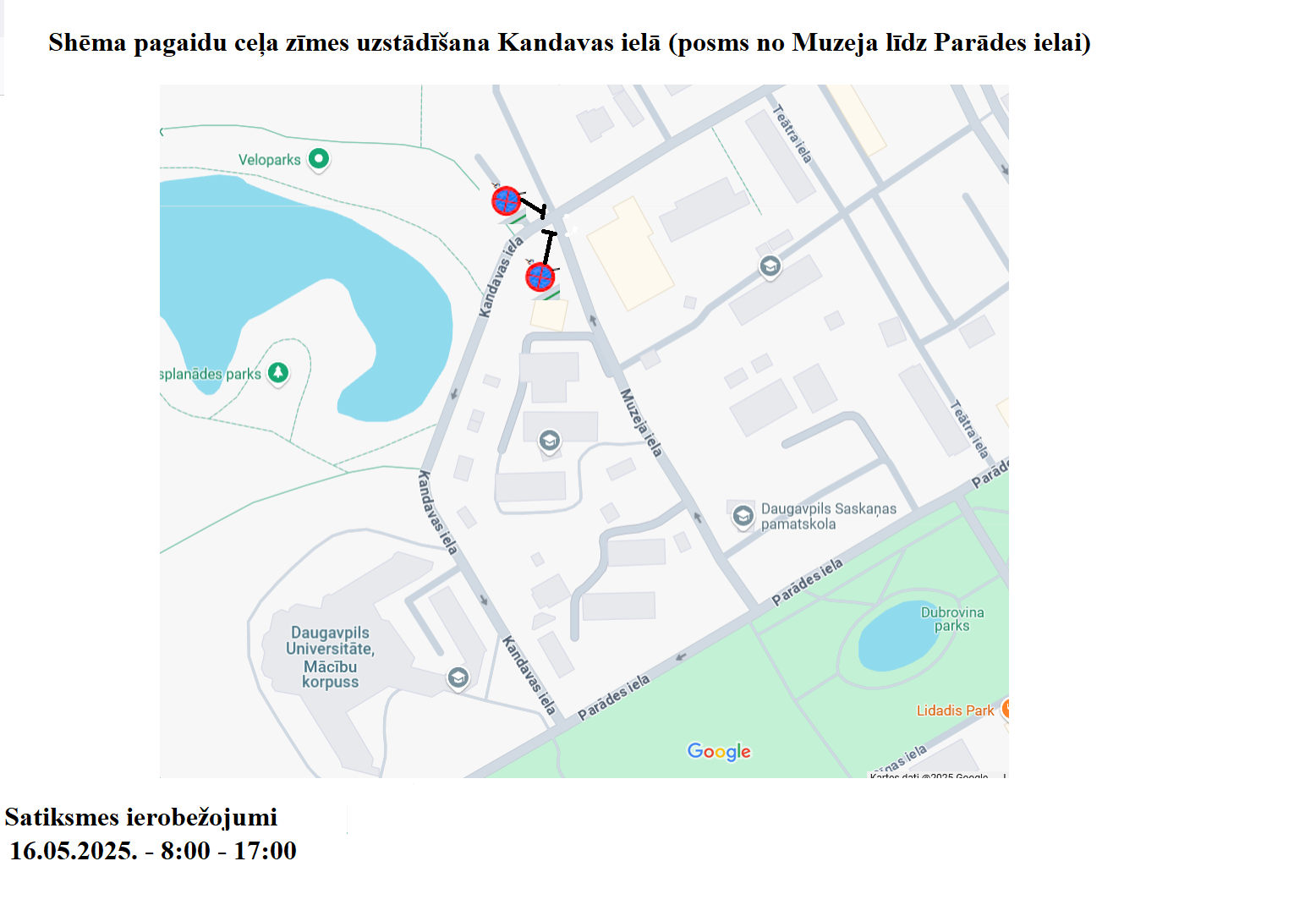 SIA „Daugavpils ūdens” informē, ka sakarā ar remonta darbiem ūdensvada tīklos laika periodā no 2025.gada 10.marta līdz 13.martam tiks slēgta autotransporta kustība Parādes ielā (posmā no Teātra ielas līdz Muzeja ielai).