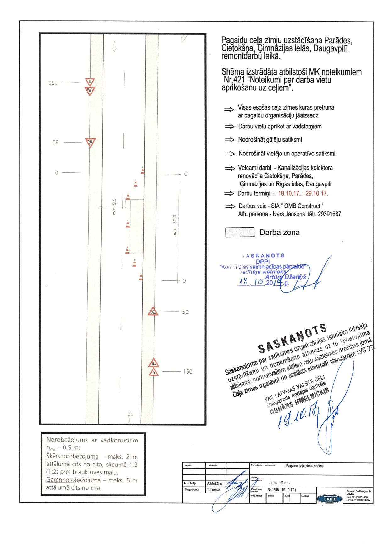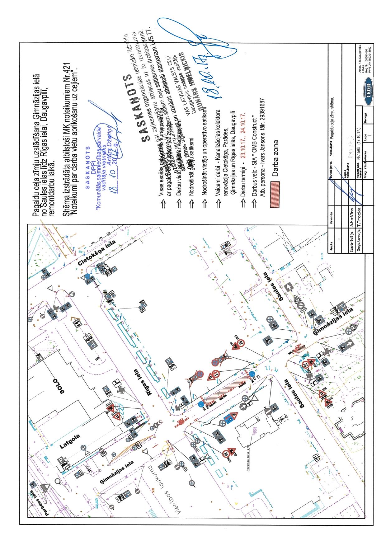 23.un 24.10.2017. - Pagaidu ceļa zīmju uzstādīšana Ģimnāzijas ielā (no Saules ielas līdz Rīgas ielai)