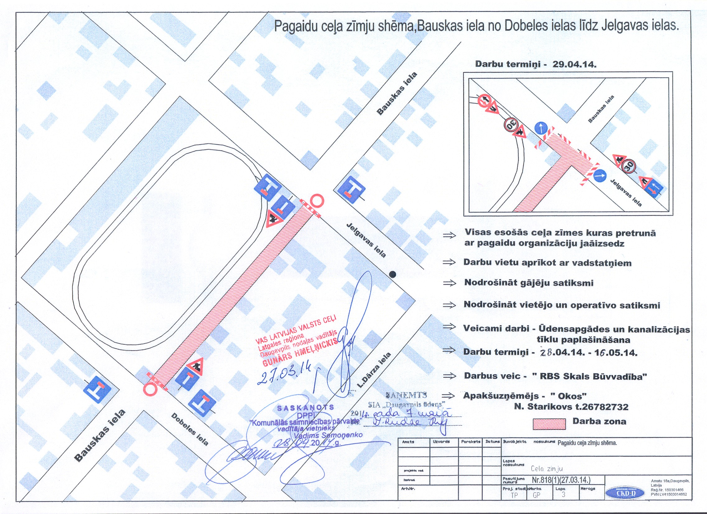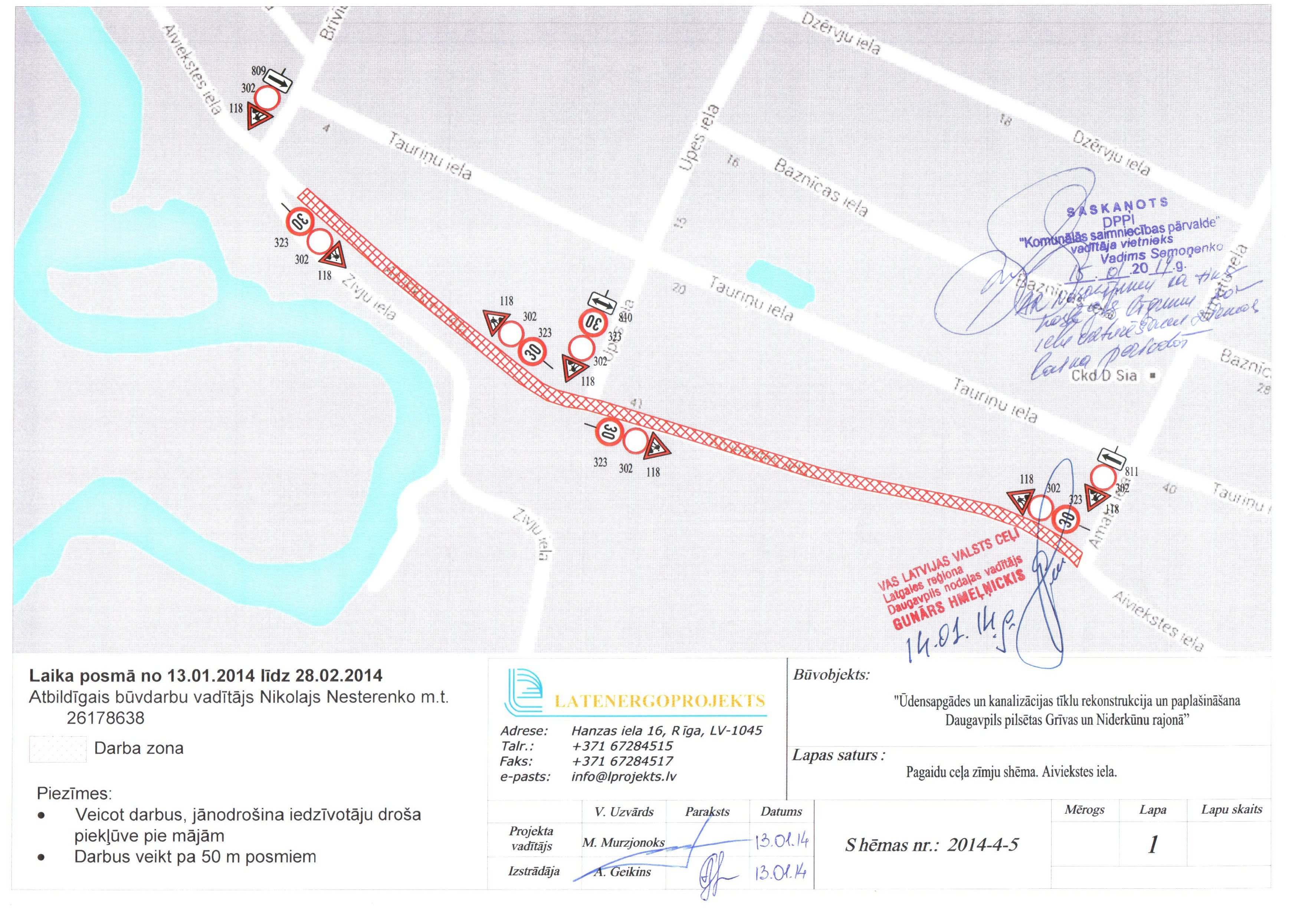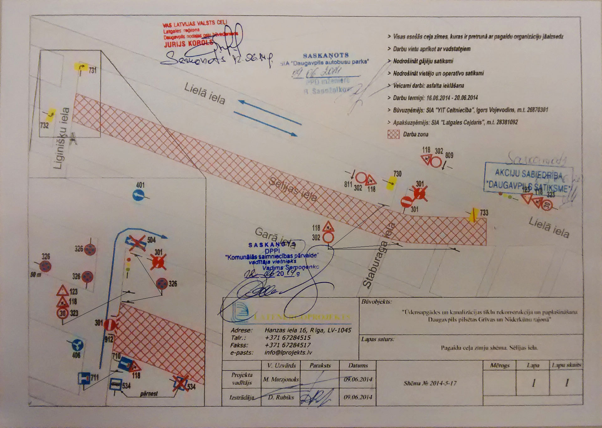 Būvniecības darbu veikšanas periodā autotransporta kustības shēmas būvdarbu vietās tiks izmainītas. Plānojot Jūsu braucienus, ievērojiet pagaidu uzstādītās ceļa zīmes.