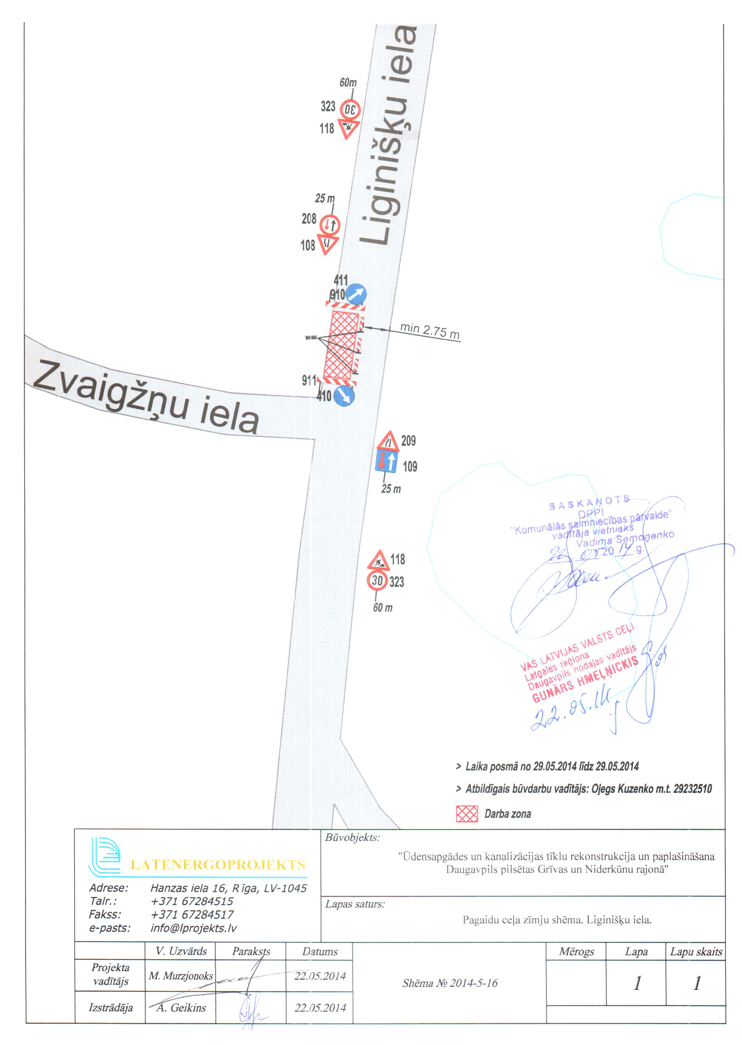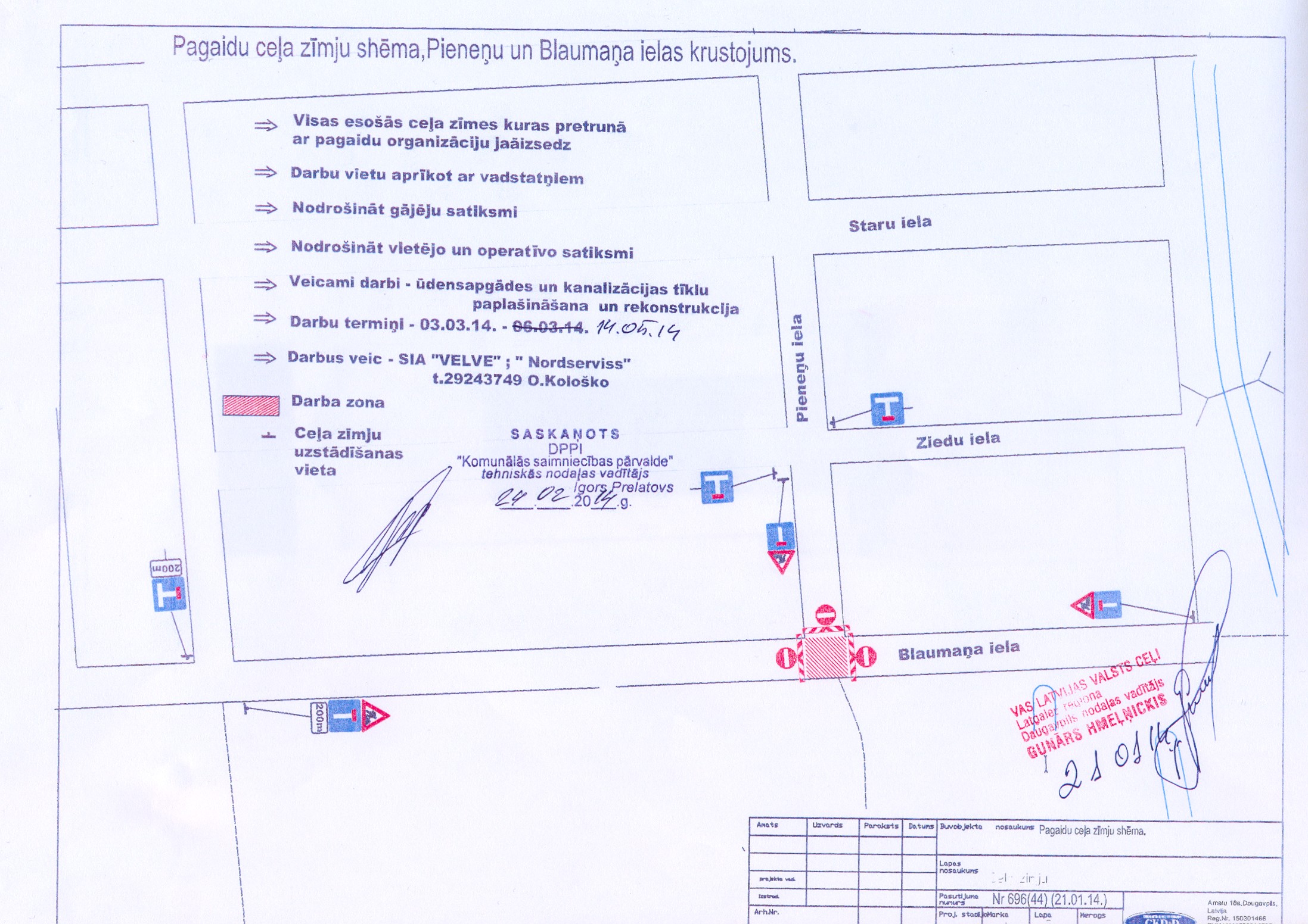 - Sēlijas ielā (no Upes ielas līdz Liginišķu ielai) -pagarinājums līdz 20.06.2014.