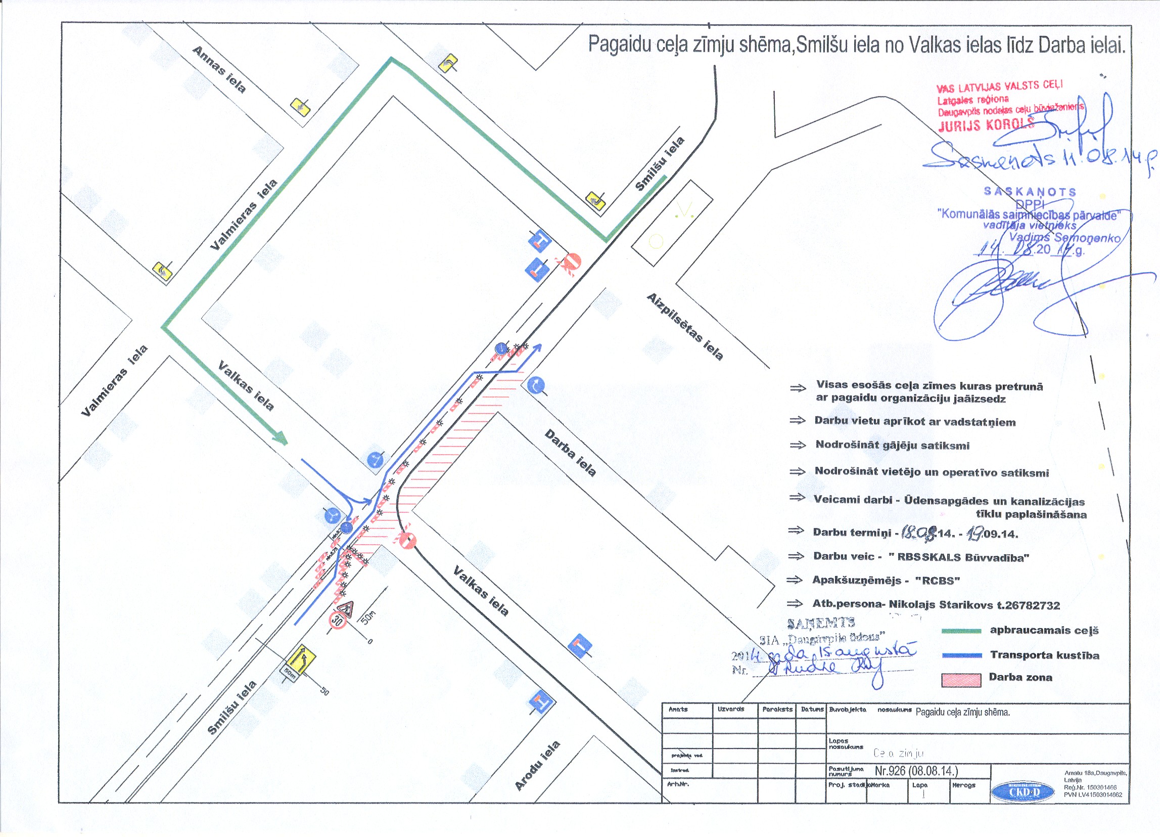 No 10.08.2015. līdz 26.08.2015 Arendoles ielā (sk.shēmu) (būvuzņēmējs - SIA "Daugavpils būvmehanizācija")